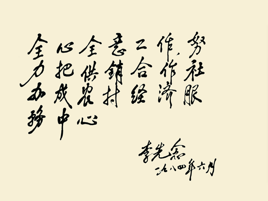 李先念同志1984年6月为《中国供销合作社史料选编》题词