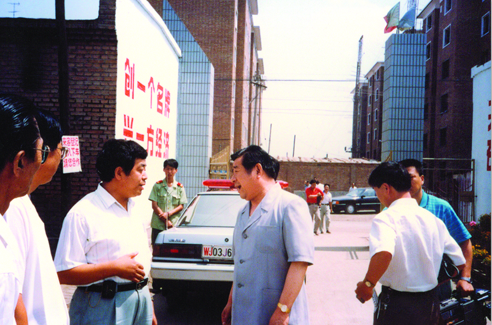 1996年7月,时任内蒙古自治区党委书记刘明祖(中)视察呼和浩特市基层供销合作社