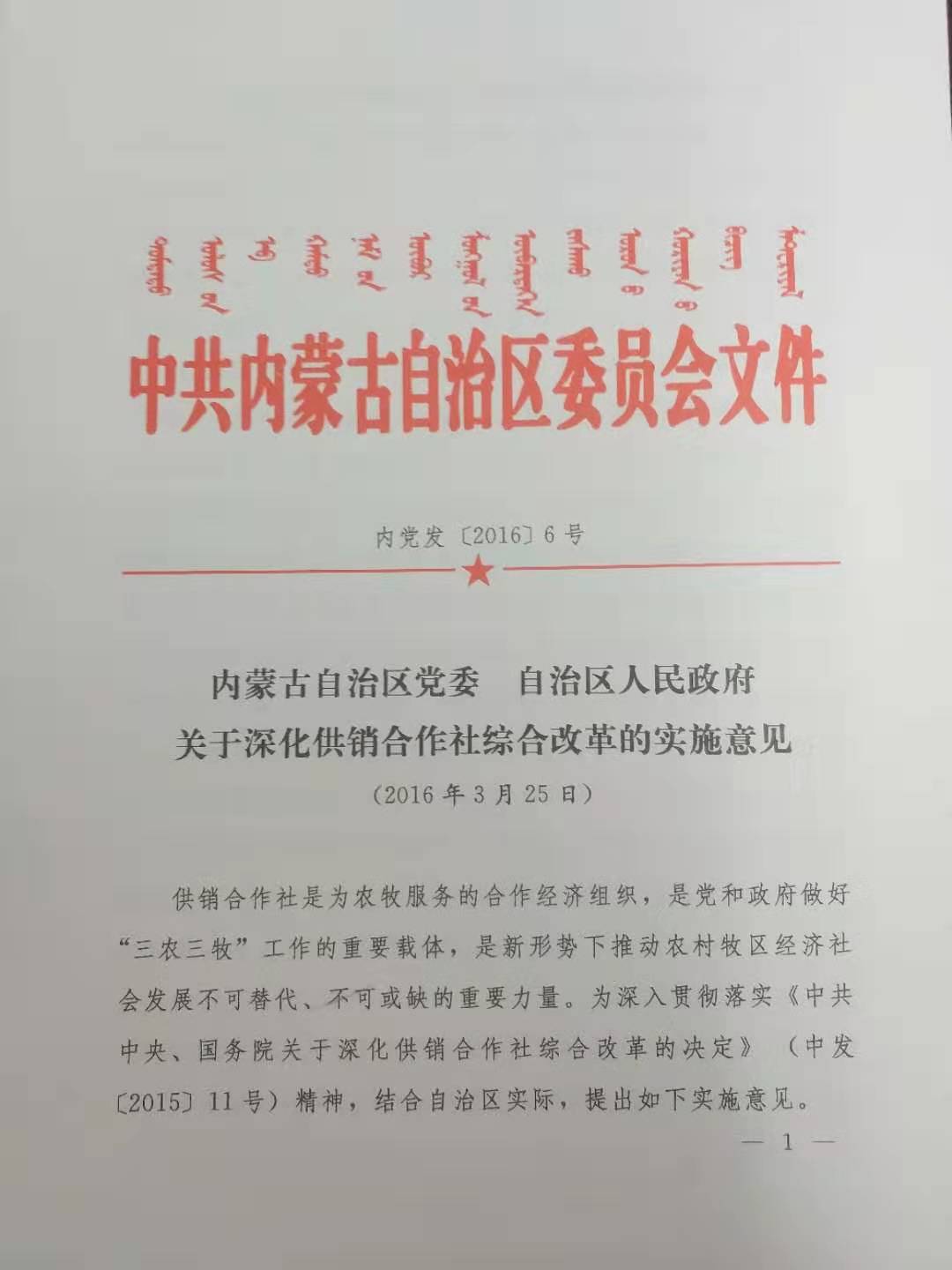 2016年7月1日,全区供销合作社综合改革推进会暨区社六届五次理事会议、四次监事会议在呼和浩特市召开。受自治区人民政府副主席王玉明委托,自治区人民政府副秘书长牧远出席会议并讲话。自治区党委组织部副部长闫同义出席会议并讲话,自治区纪委驻商务厅纪检组组长高晗出席会议。
