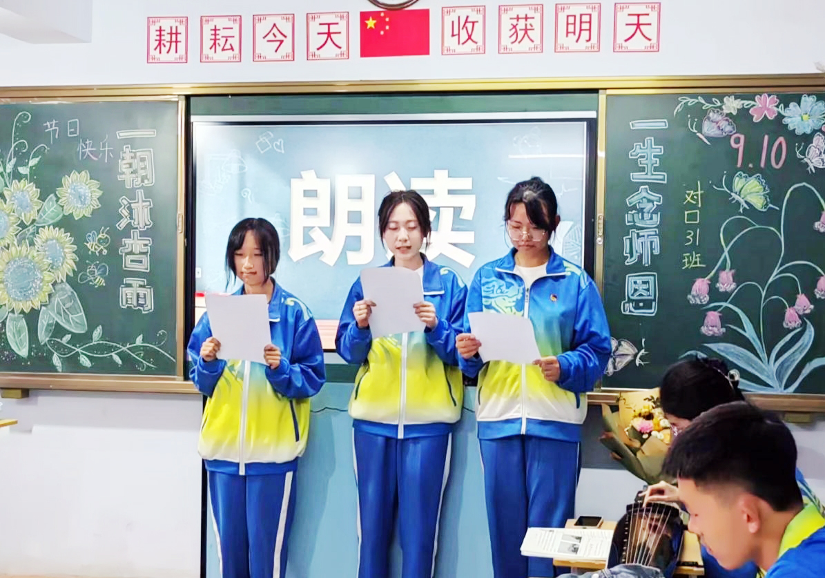 2023年9月10日,在校团委的组织下,各班开展以“一朝沐杏雨,一生念师恩”为主题的团会,师生共同庆祝第39个教师节。团会上,学生们利用多媒体课件,讲解了教师节的来历,让学生们感受教师节的意义,播下尊师爱师的种子。对于这一特殊的节日,同学们表示要用一颗感恩的心来度过。