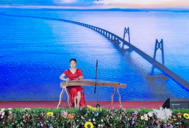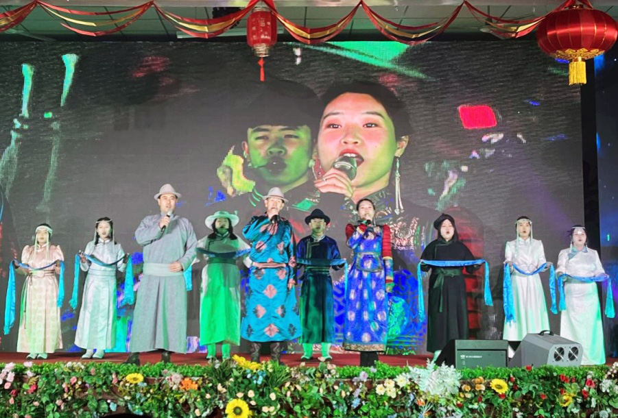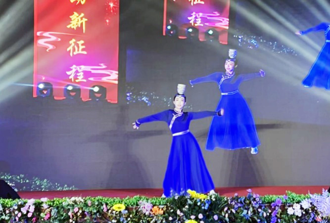 第三篇章“同心筑梦”选取的每一个节目都从不同侧面体现出各族儿女为筑牢伟大的中国梦所付出的不懈努力!歌曲《紫荆花盛开》唱出中国人民洗雪了香港被侵占的百年国耻;茶艺表演《青花瓷》展现了中国历史悠久的传统文化;舞蹈《声声慢》向后人演绎了至刚至柔的婉约词风……演出现场老师们也纷纷拿出了看家本领,李卓宁老师的蒙古族舞蹈《顶碗舞》,让我们体验了最具特色的民族文化;赵璐老师和学生云琬淇带来的《月半小夜曲》,让我们在优雅的歌声中感受月光下的浪漫;由达来、白玉宝、乌日尼勒老师带领学生们用蒙语演唱的《梦中的额吉》赞美了“草原母亲”那跨越地域、血缘的大爱,他们的节目为晚会的成功举办增添了浓墨重彩的一笔。