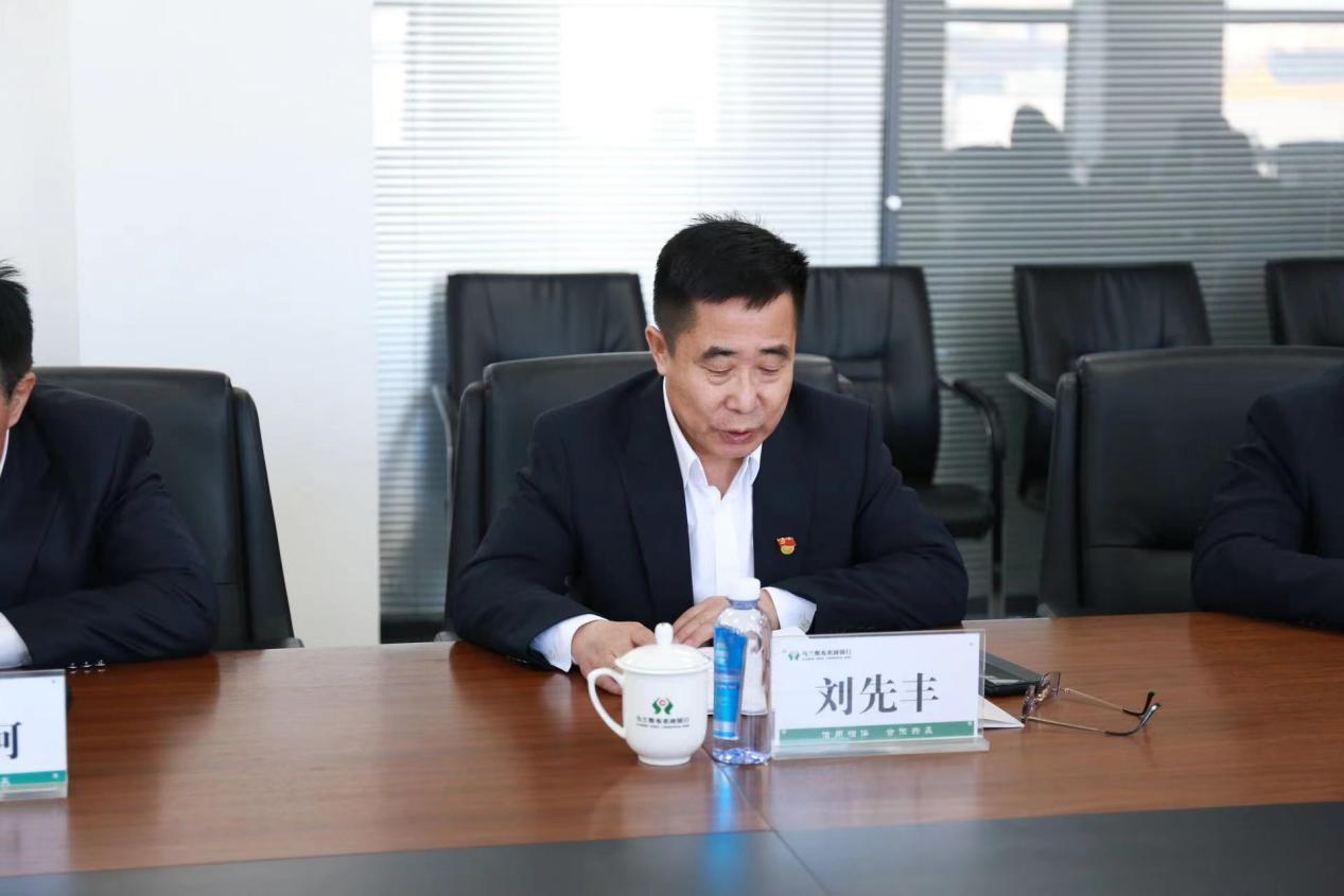 刘先丰在致辞中表示:乌兰察布市供销合作社联合社负责全市重要农牧业生产资料、农畜产品经营等重要商品的储备供应、协调管理等工作。乌兰察布农商银行承担着统筹、协调全市农信社发展的职责。双方有着很深的历史渊源和文化传承,我们将持续加强沟通与交流,发挥乌兰察布市供销合作社联合社的组织协调优势、渠道资源优势和乌兰察布农商银行扎根基层、便捷高效的金融服务优势,实现优势互补、平等互利、协同发展、合作共赢,共同推进强农、惠农、富农政策与金融服务、供销服务多种举措的深度融合和联动发力,共同为实现人民群众的“美好生活”贡献农信力量和供销力量。