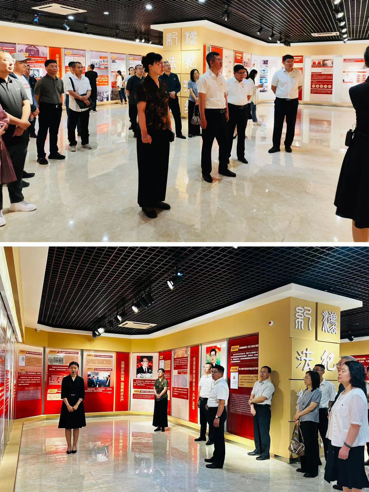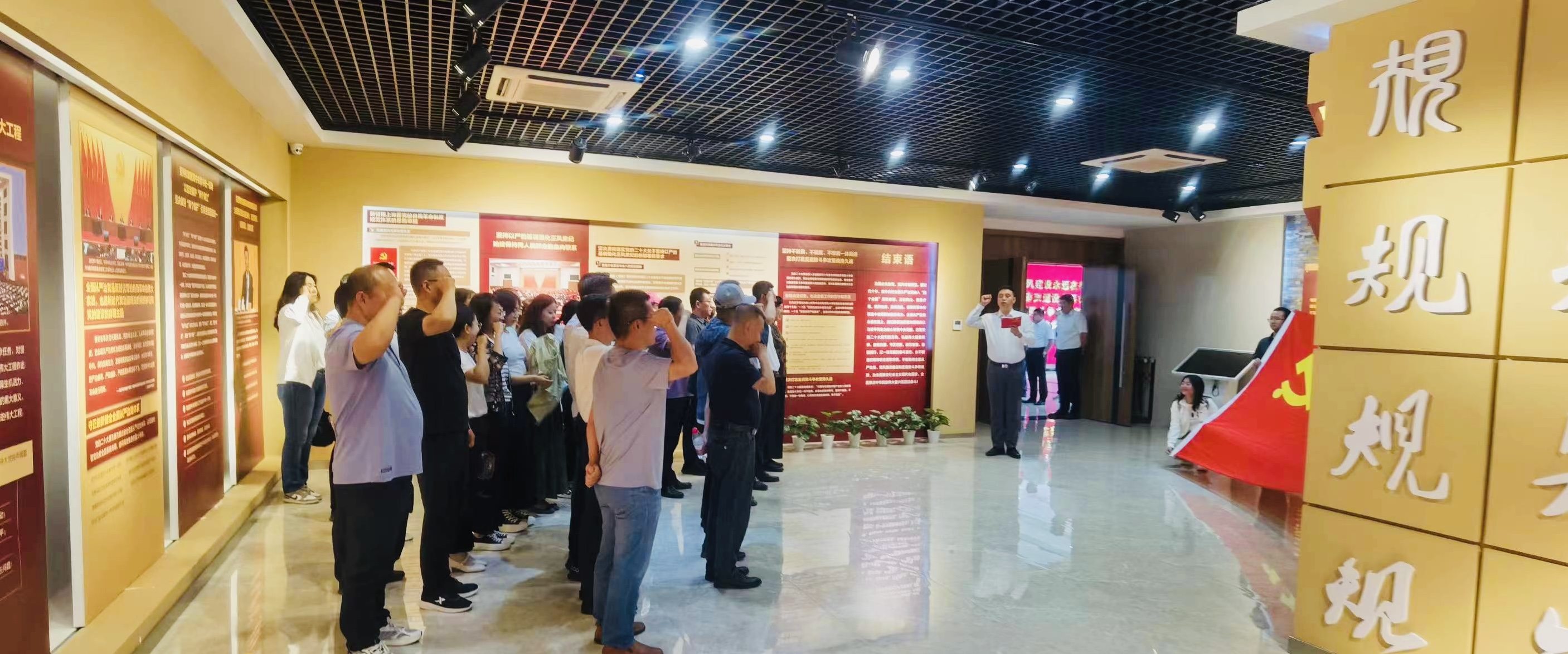 参观结束后,全体党员干部面向党旗、举起右拳,重温入党誓词。