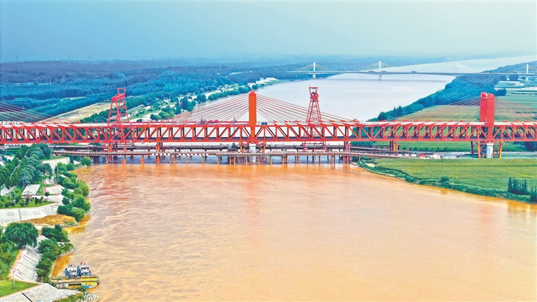 9月20日,山东省济滨高铁济阳黄河公铁两用特大桥顺利合龙,实现全桥贯通。新华社记者 郭绪雷 摄