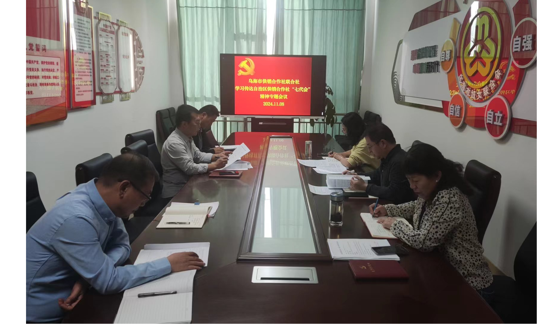 11月8日,乌海市供销合作社联合社组织召开专题会议,深入传达学习内蒙古自治区供销合作社联合社第七次代表大会精神,市社党组书记胡应龙主持会议,机关全体干部职工参加会议。