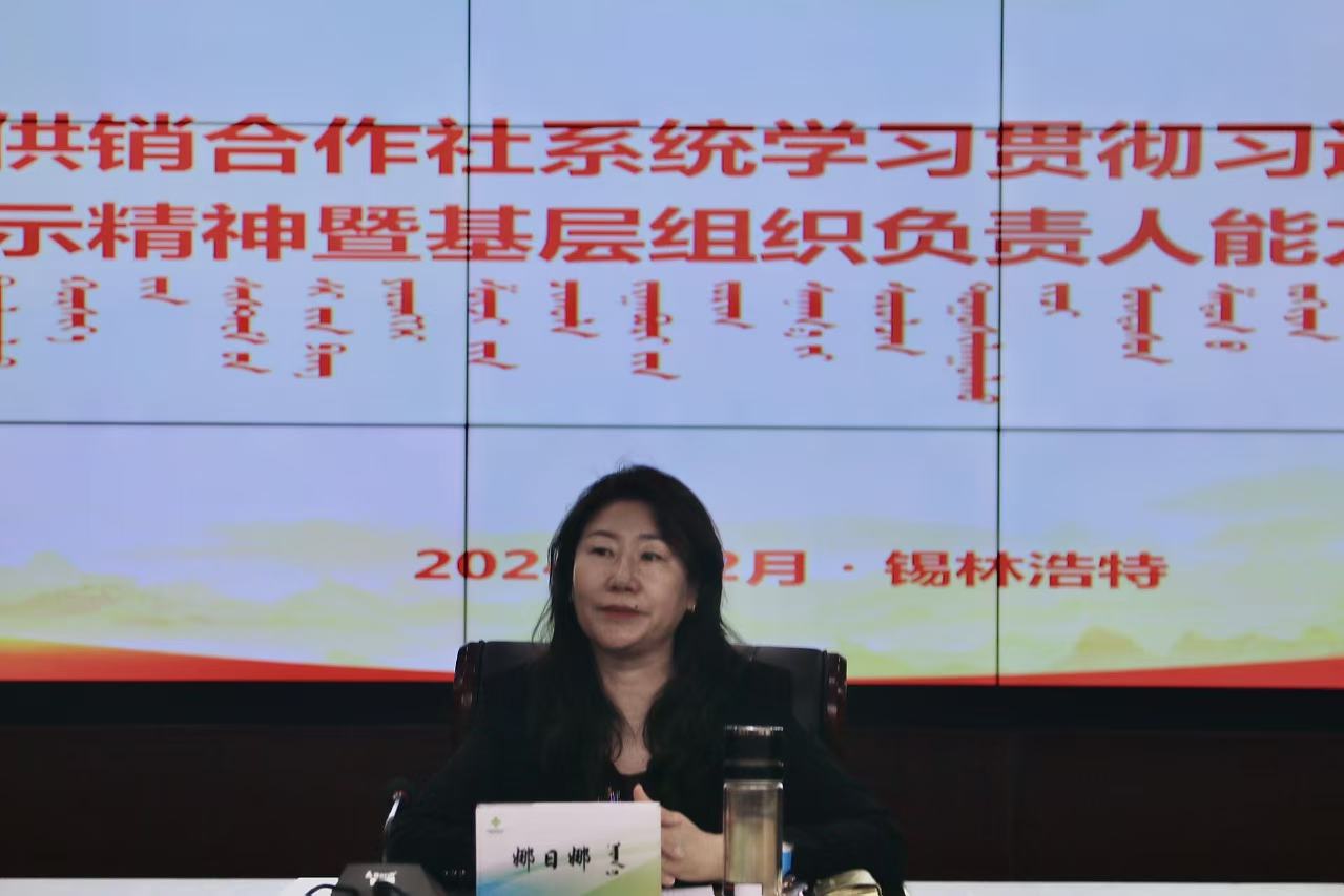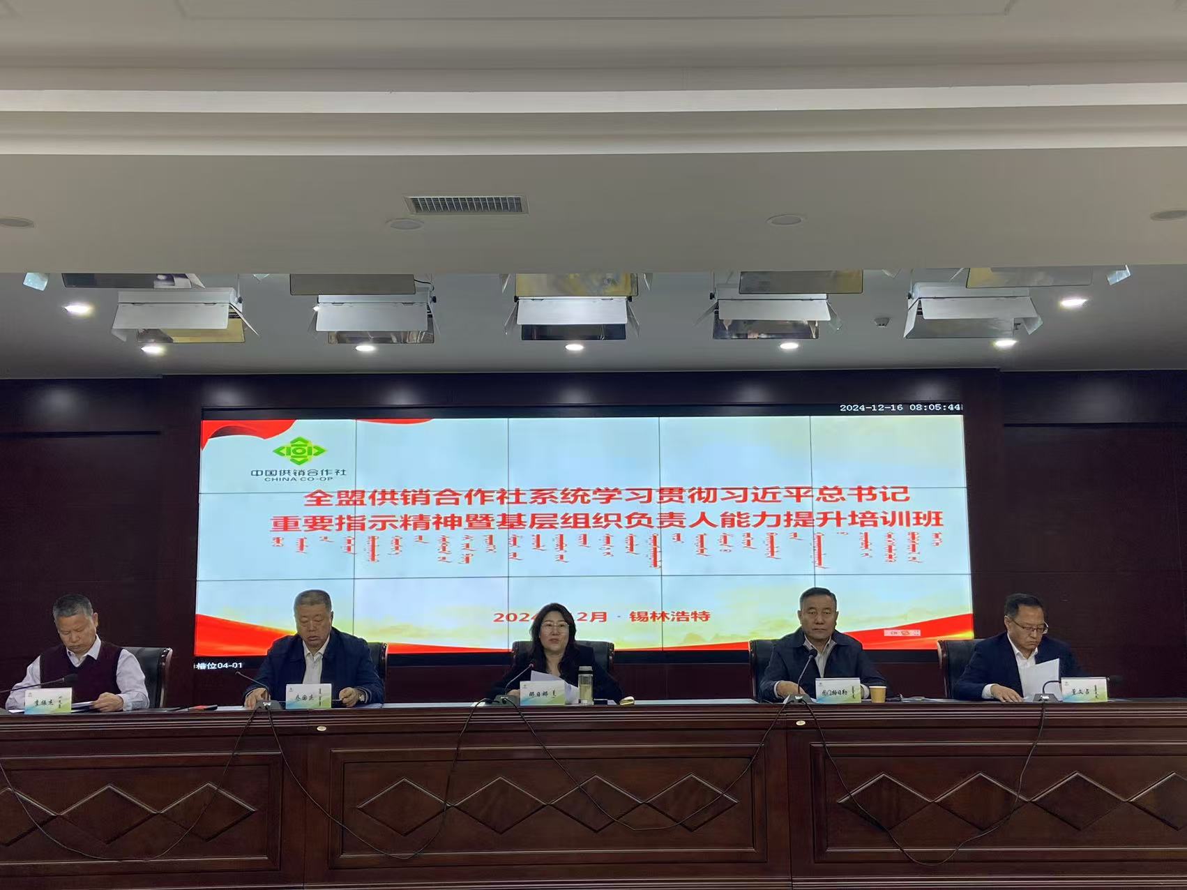 12月16日,锡林郭勒盟供销合作社系统学习贯彻习近平总书记重要指示精神暨基层组织负责人能力提升培训班在锡林浩特市成功举办。盟供销社党组书记,理事会主任娜日娜出席开班式并讲话。盟供销社党组成员、理事会副主任图门格日勒主持培训。