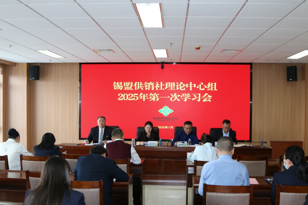 1月7日,锡盟供销社党组召开理论学习中心组2025年第一次会议,集中学习贯彻中国共产党内蒙古自治区第十一届委员会第九次全体会议暨全区经济工作会议精神和中共锡盟委2025年第一次(扩大)会议暨全盟经济工作会议精神。盟供销社党组书记、理事会主任娜日娜主持会议并讲话。