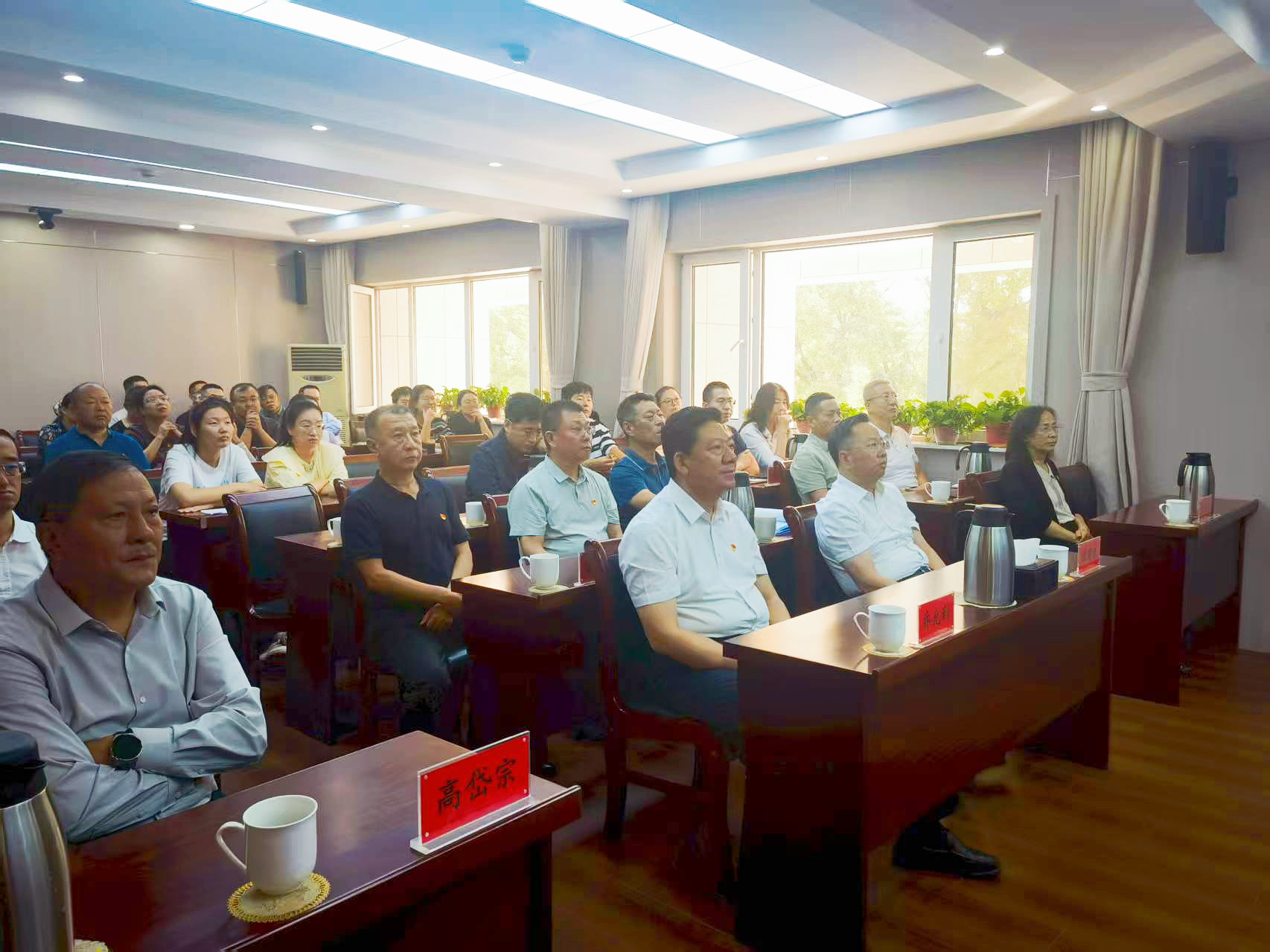 图为:自治区供销合作社联合社直属系统组织党员干部职工集体观看纪念中国人民抗日战争暨
