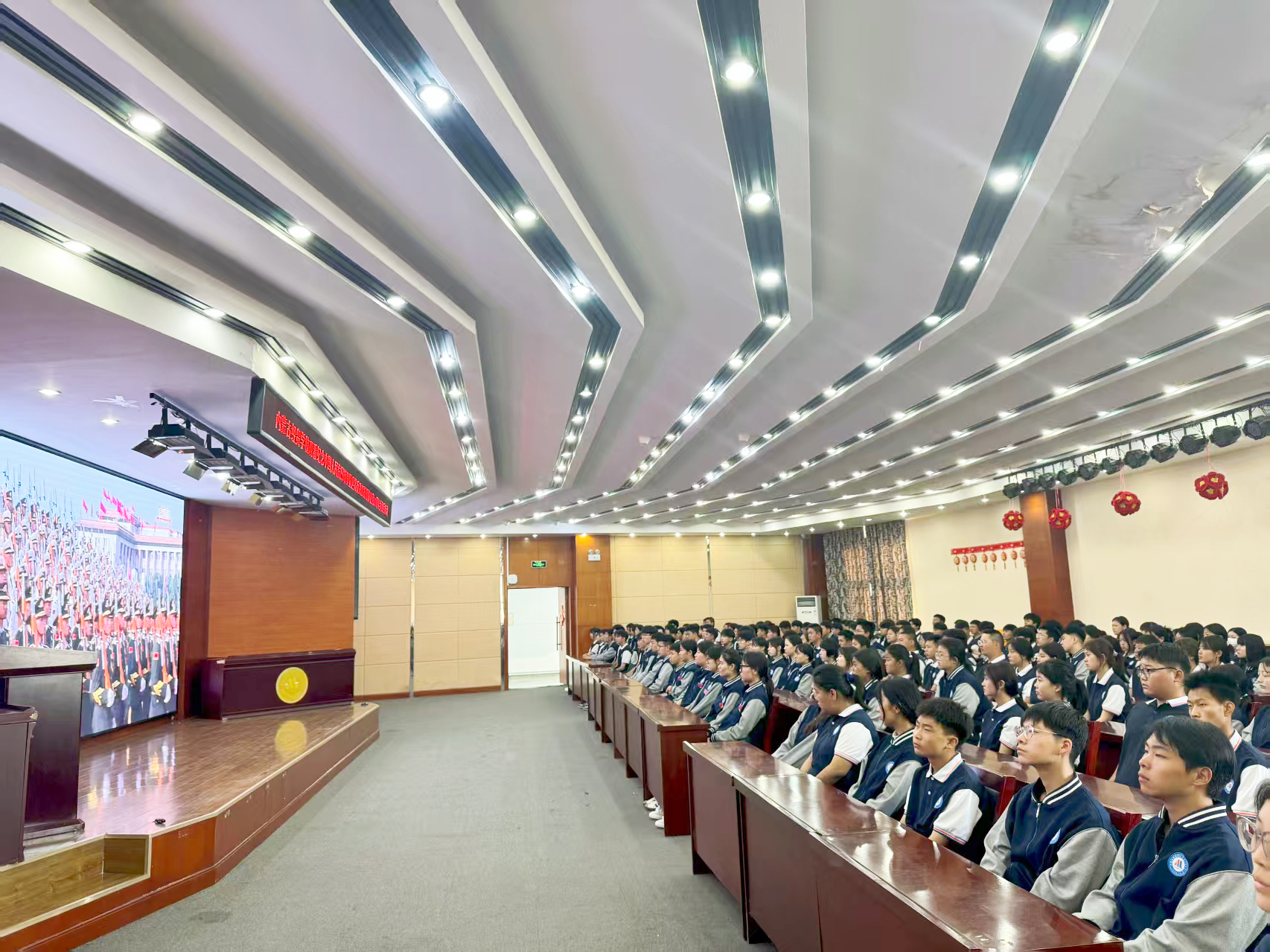 图为:内蒙古经贸学校全体师生、教职工共同观看直播。