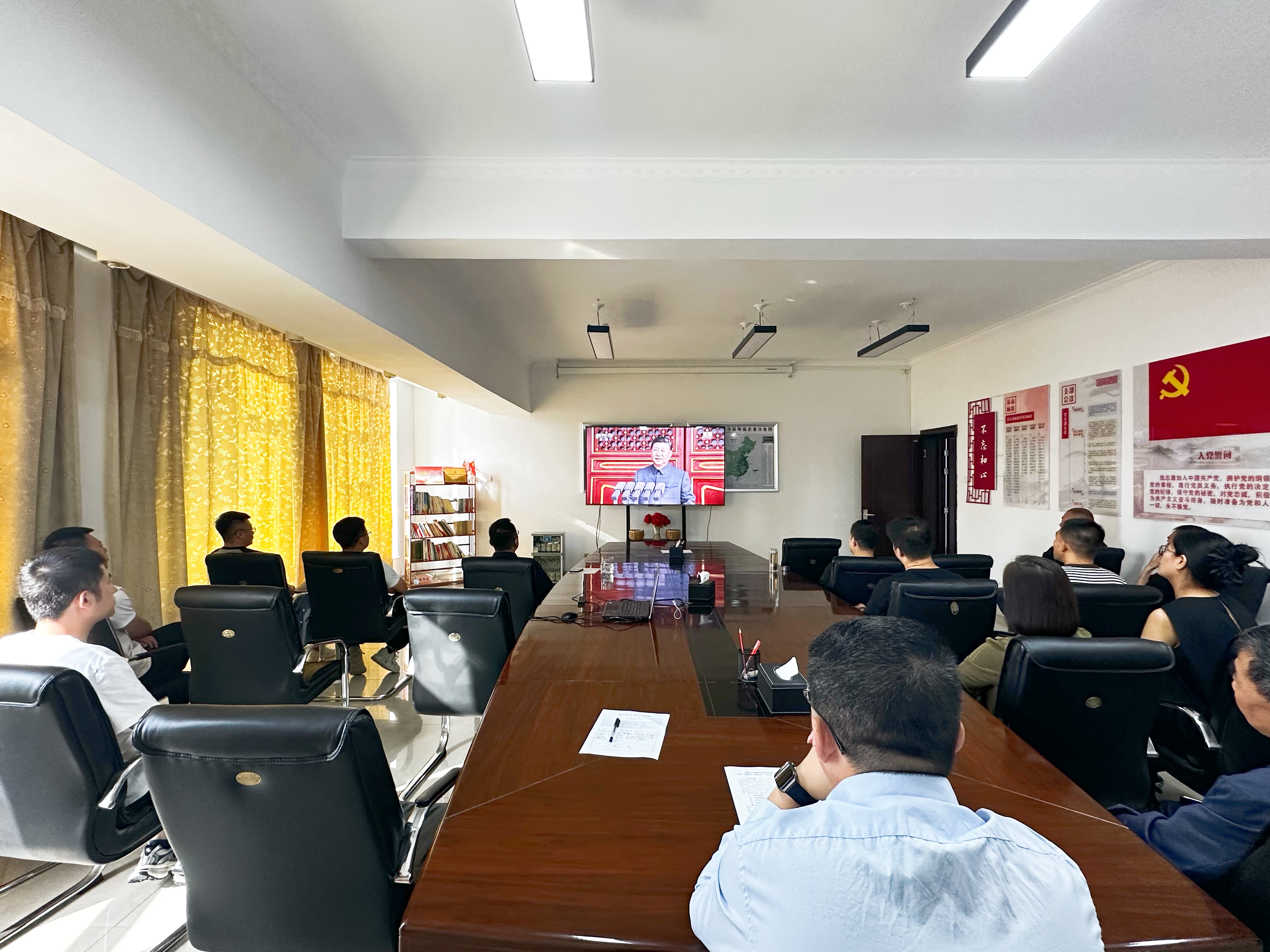 自治区供销合作社联合社直属系统组织党员干部职工集体观看纪念中国人民抗日战争暨世界反法西斯战争胜利80周年大会直播