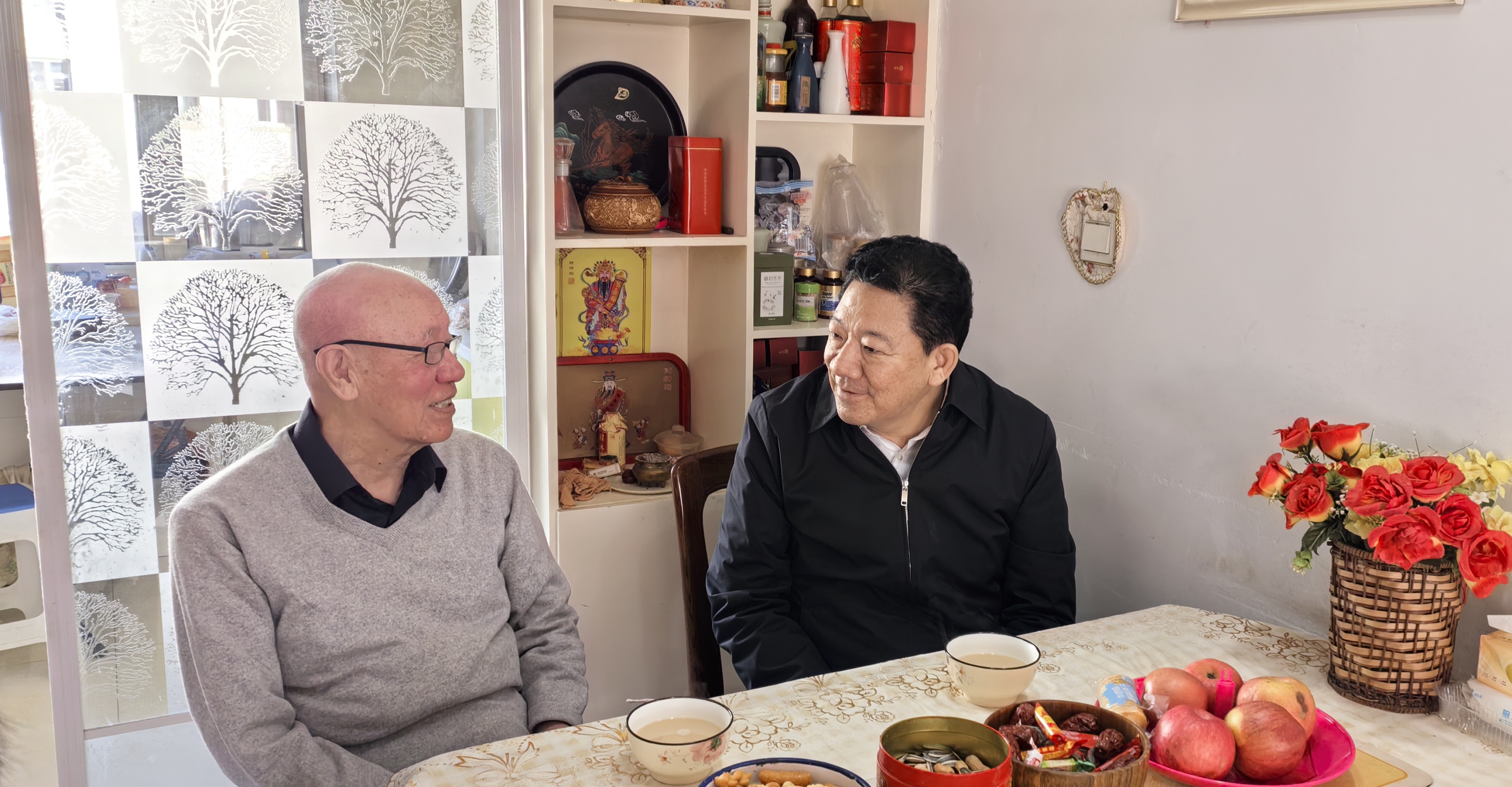 区社监事会副主任、一级巡视员高岱宗在正厅级退休干部王政和家里,与老领导亲切交谈,深情回忆了当年共同奋斗的供销岁月。交谈中,高岱宗通报了全系统过去一年取得的发展成就。他关切询问老领导的生活与健康情况,叮嘱其保重身体,并希望老领导继续发挥经验优势,为供销合作事业发展建言献策。