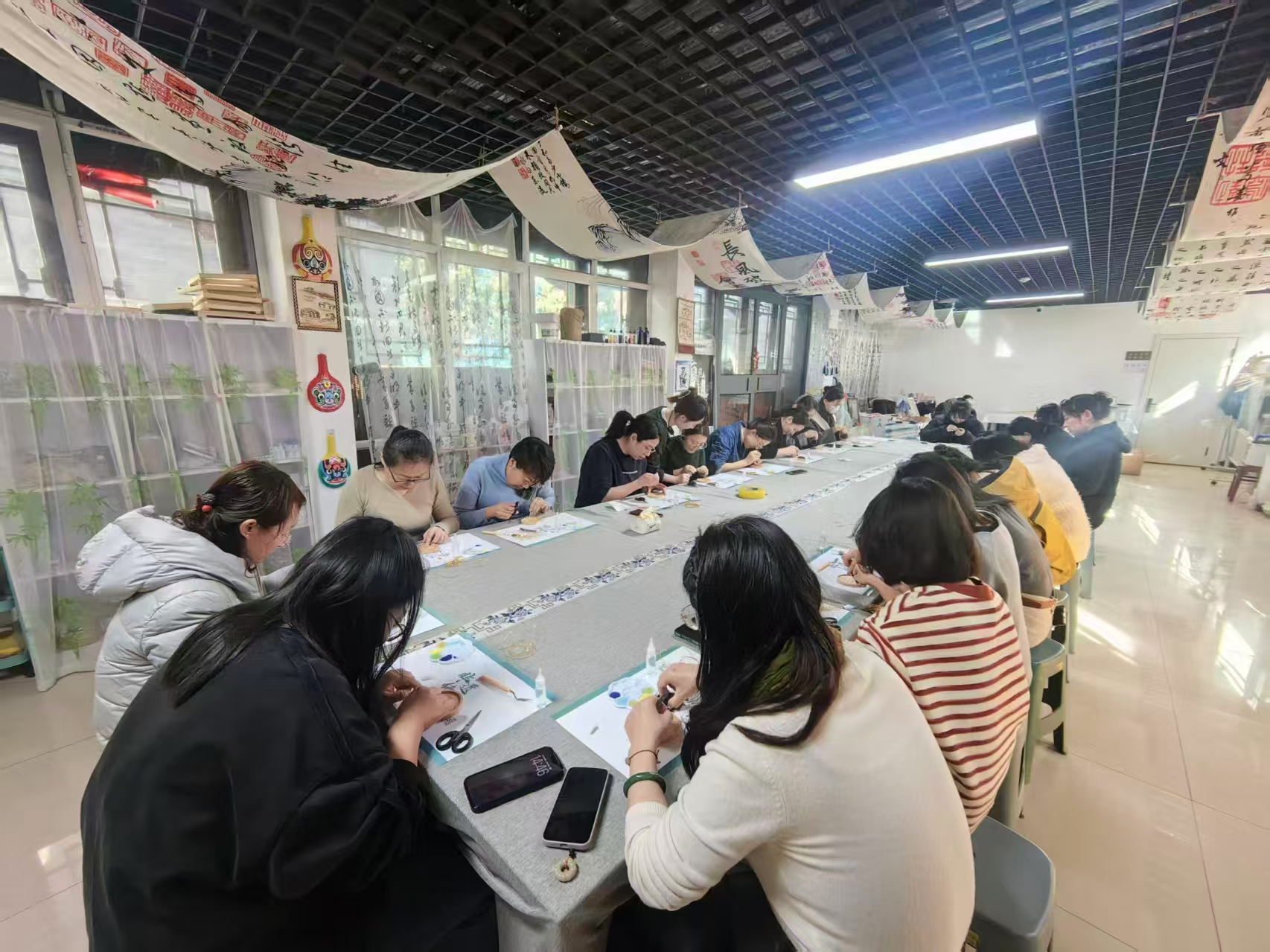 活动现场,非遗传承人详细讲解了掐丝珐琅的历史渊源、工艺特点和制作流程,并现场示范了掐丝、固化等关键步骤。女职工们认真聆听、仔细观摩,随后拿起工具,从勾勒线条到填充色彩,一步步将普通的金属丝和釉料,变成了一件件色彩绚丽、造型精美的杯垫作品。大家在动手创作中放松身心、陶冶情操,充分感受传统工艺之美,展现出爱岗敬业、心灵手巧的巾帼风采。