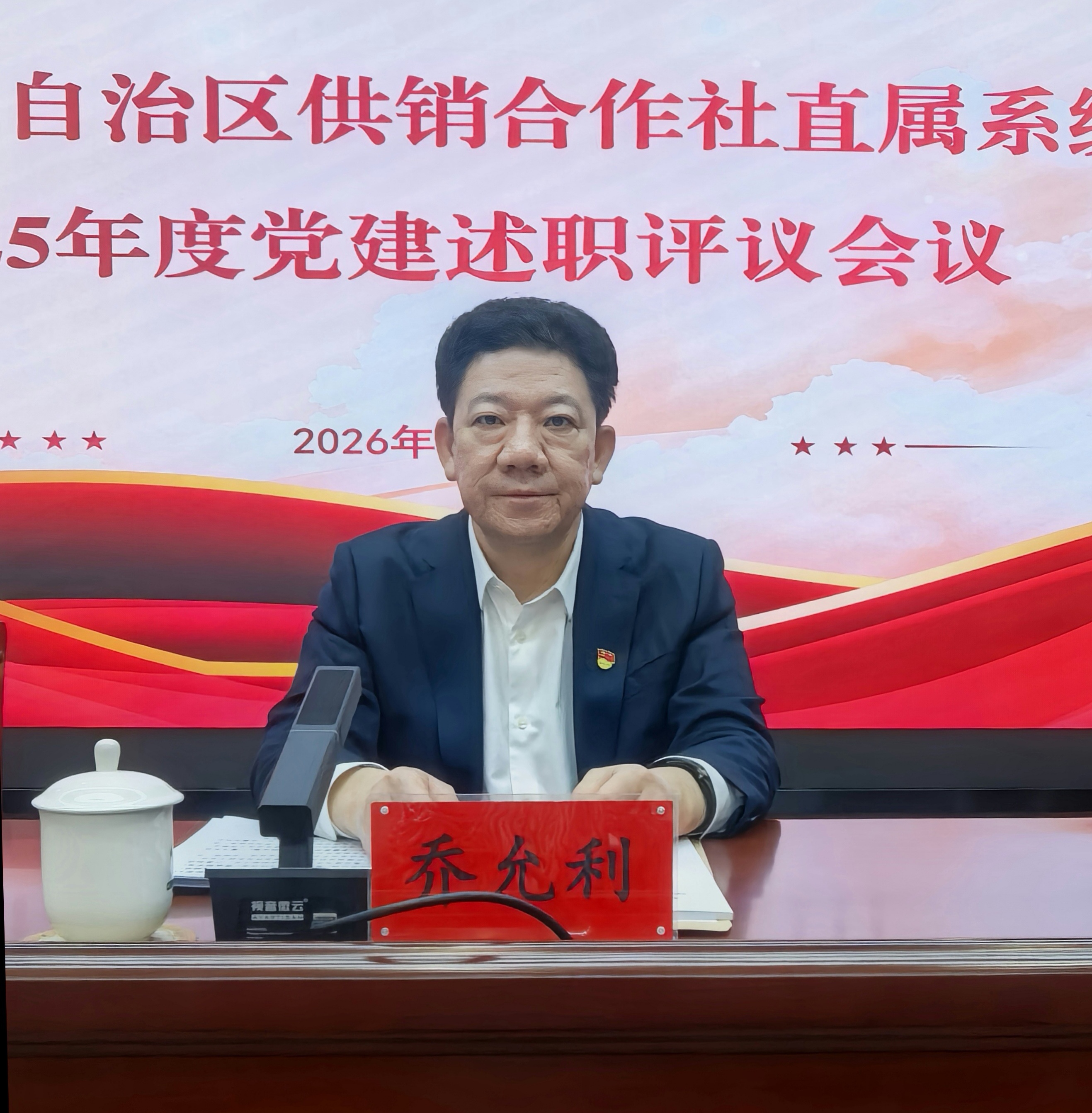 2026年1月16日,自治区供销合作社联合社(以下简称区社)组织召开2025年度直属系统党建述职评议会议听取区社直属系统各党支部(总支)书记2025年度抓党建工作述职,开展民主评议区社党组书记、理事会主任机关党委书记乔允利点评并讲话,区社党组成员、理事会副主任、机关党委副书记金朝霞主持会议,区社领导班子成员出席会议。